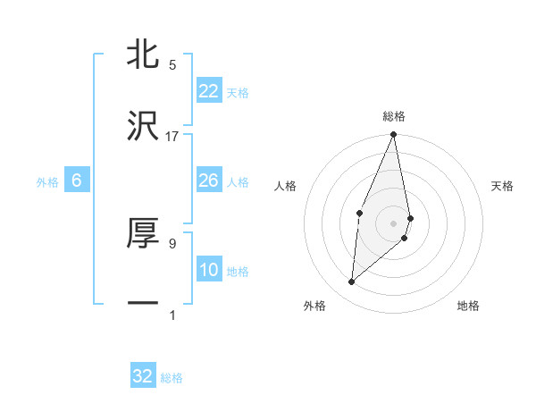 北沢 厚一さんを姓名の画数から五運を鑑定