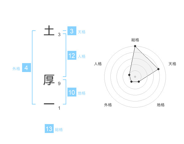 土 厚一さんの総格は13画の5点!