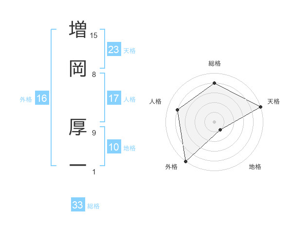 増岡 厚一さんを姓名の画数から五運を鑑定