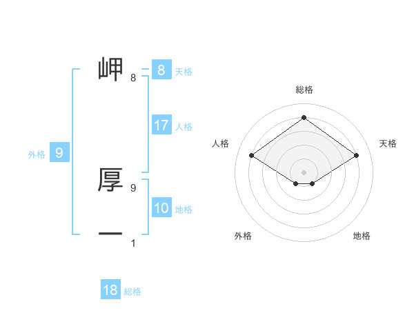 岬 厚一さんの総格は18画の4点!