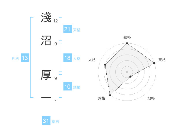 淺沼 厚一さんの天格は21画の5点!