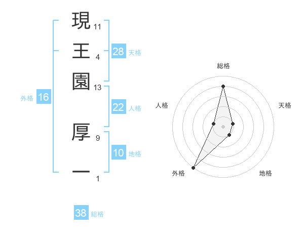現王園 厚一さんを姓名の画数から五運を鑑定
