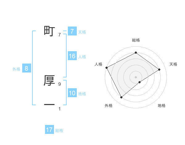 町 厚一さんの総格は17画の4点!