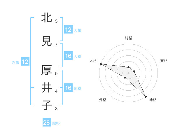 北見 厚井子さんを姓名の画数から五運を鑑定