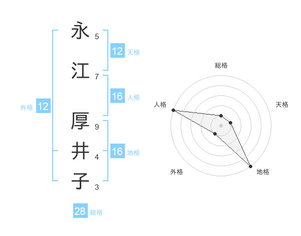 永江 厚井子さんを姓名の画数から五運を鑑定