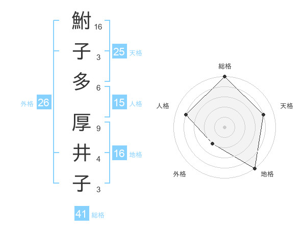 鮒子多 厚井子さんを姓名の画数から五運を鑑定