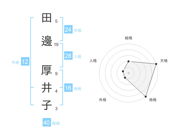 田邊 厚井子さんを姓名の画数から五運を鑑定