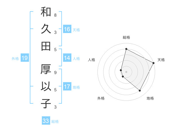 和久田 厚以子さんを姓名の画数から五運を鑑定