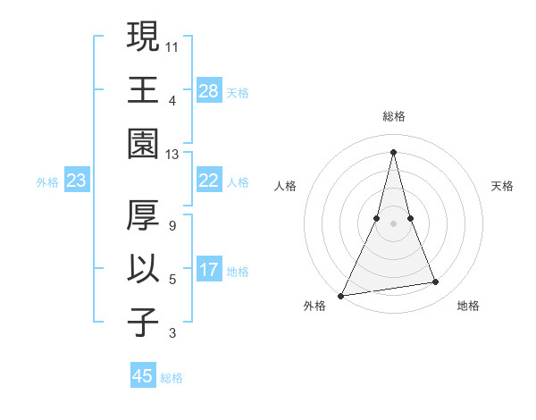 現王園 厚以子さんの外格は23画の5点!