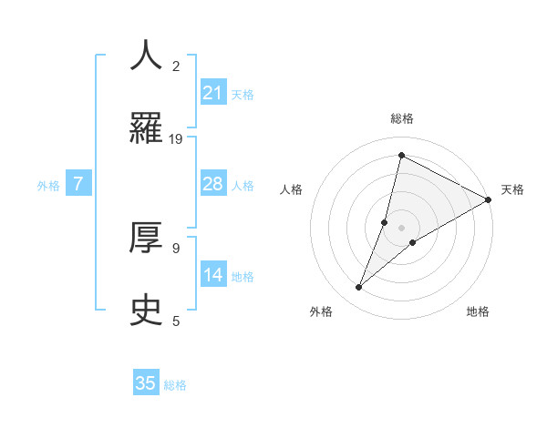 人羅 厚史さんを姓名の画数から五運を鑑定