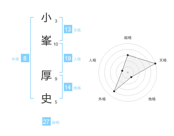 小峯 厚史さんの総格は27画の3点!