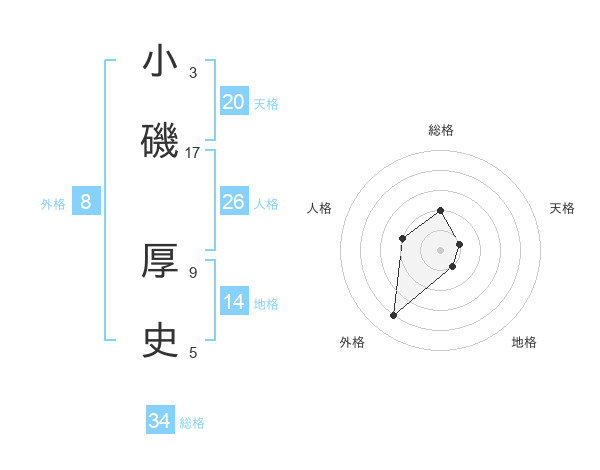小磯 厚史さんを姓名の画数から五運を鑑定