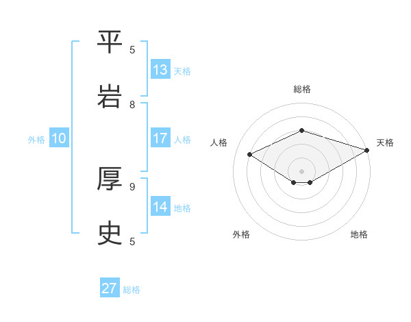 平岩 厚史さんの天格は13画の5点!