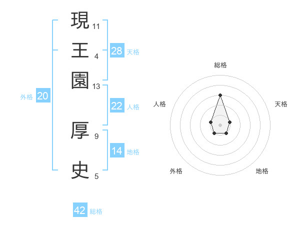 現王園 厚史さんの総格は42画の3点!