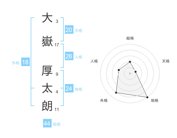 大嶽 厚太朗さんの総格は44画の2点!
