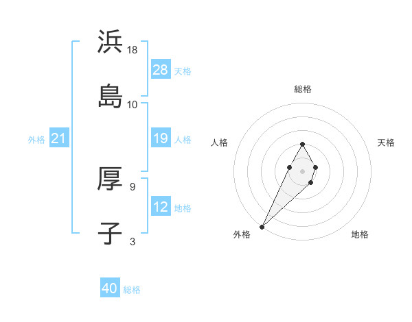 浜島 厚子さんを姓名の画数から五運を鑑定