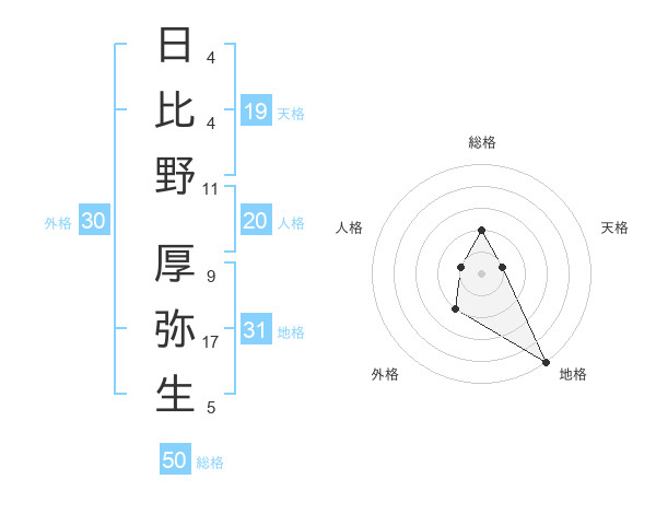 日比野 厚弥生さんの総格は50画の2点!