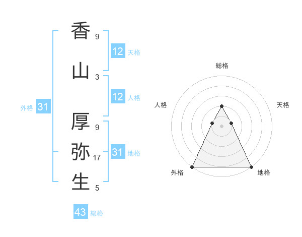 香山 厚弥生さんを姓名の画数から五運を鑑定