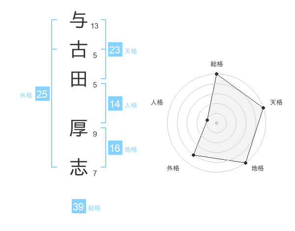 与古田 厚志さんの天格は23画の5点!