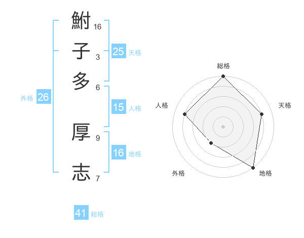 鮒子多 厚志さんの総格は41画の5点!