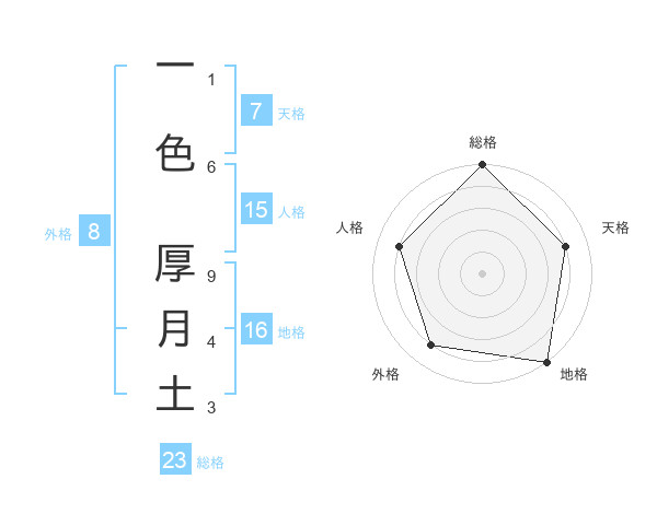 一色 厚月土さんを姓名の画数から五運を鑑定