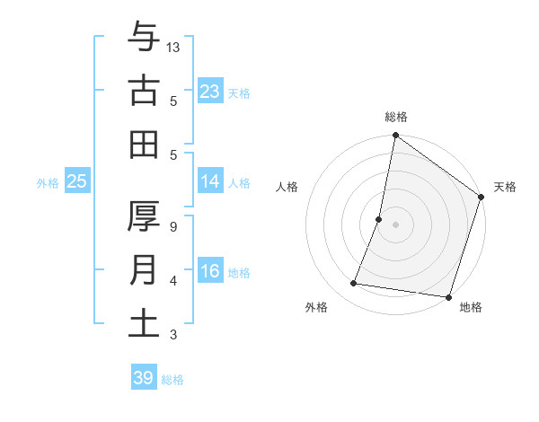与古田 厚月土さんを姓名の画数から五運を鑑定