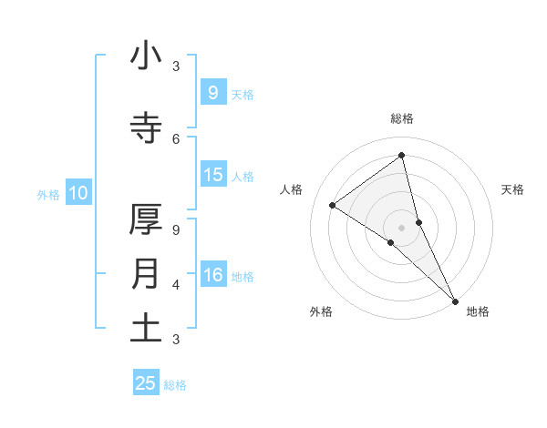 小寺 厚月土さんの総格は25画の4点!
