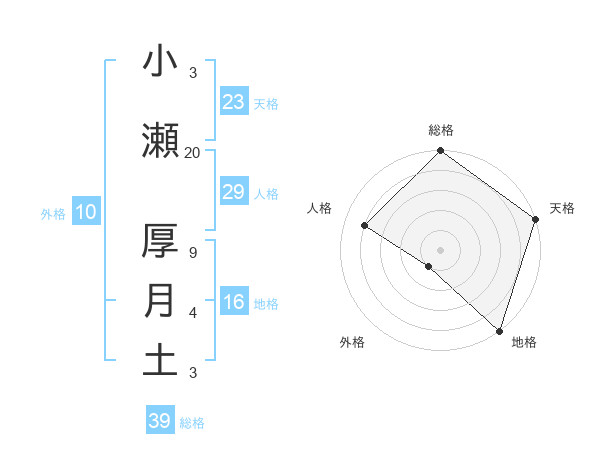 小瀬 厚月土さんの総格は39画の5点!