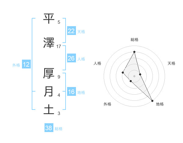 平澤 厚月土さんを姓名の画数から五運を鑑定