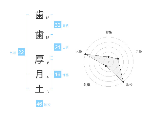 歯歯 厚月土さんを姓名の画数から五運を鑑定