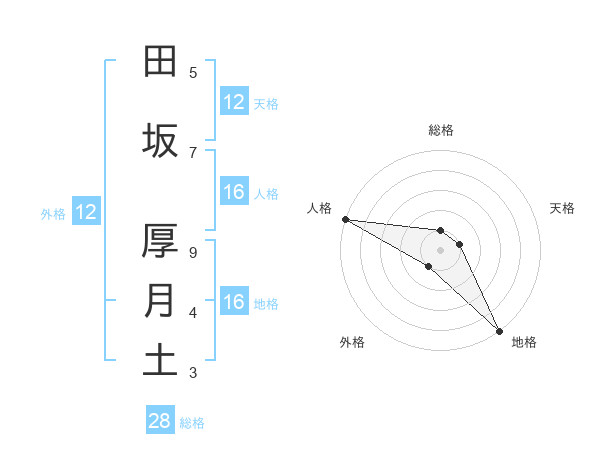 田坂 厚月土さんを姓名の画数から五運を鑑定