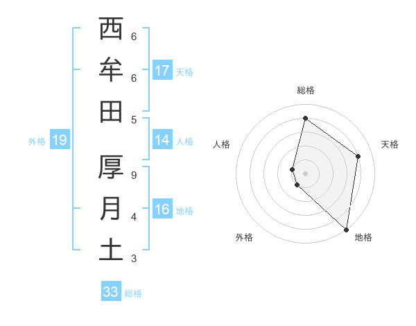 西牟田 厚月土さんを姓名の画数から五運を鑑定
