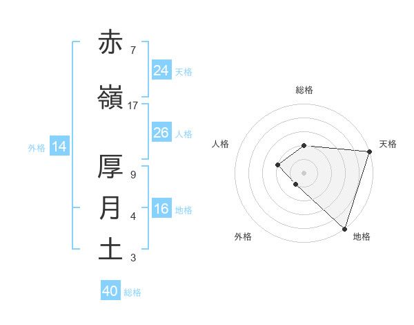 赤嶺 厚月土さんを姓名の画数から五運を鑑定