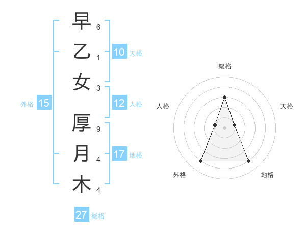 早乙女 厚月木さんを姓名の画数から五運を鑑定