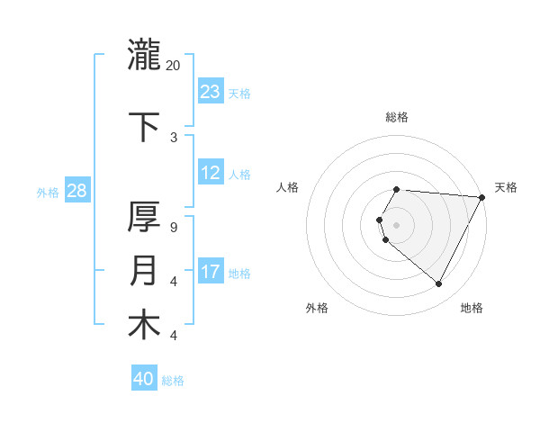 瀧下 厚月木さんを姓名の画数から五運を鑑定