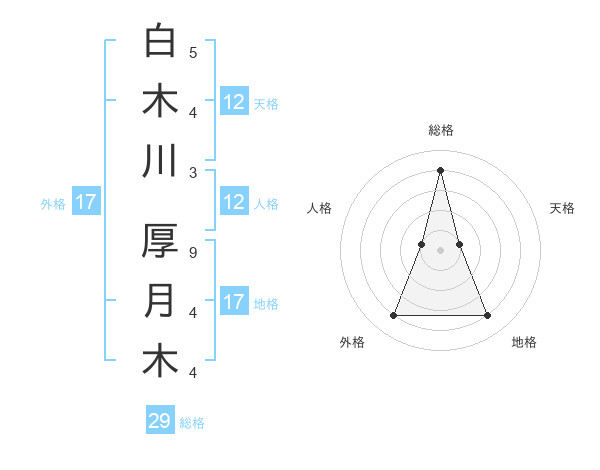 白木川 厚月木さんを姓名の画数から五運を鑑定