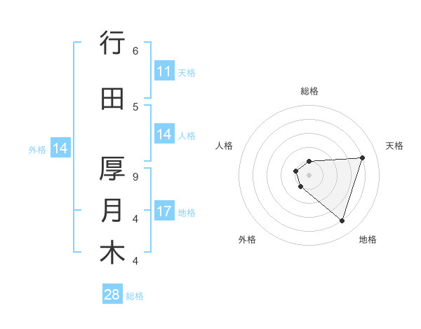 行田 厚月木さんを姓名の画数から五運を鑑定
