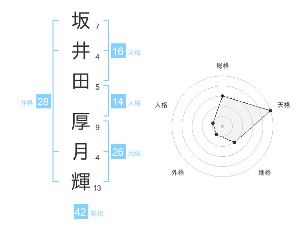 坂井田 厚月輝さんを姓名の画数から五運を鑑定