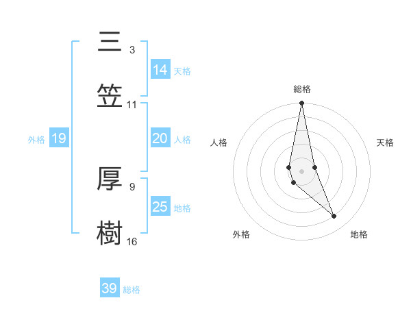三笠 厚樹さんを姓名の画数から五運を鑑定