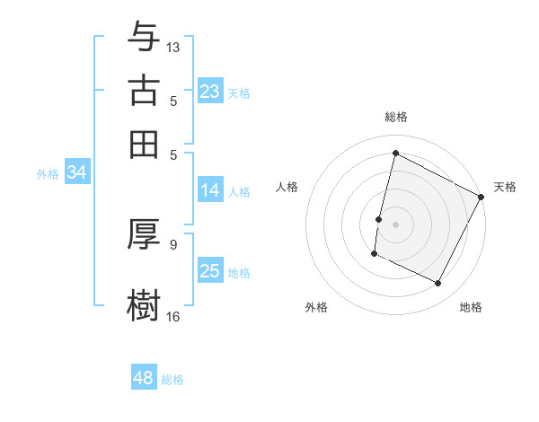 与古田 厚樹さんを姓名の画数から五運を鑑定