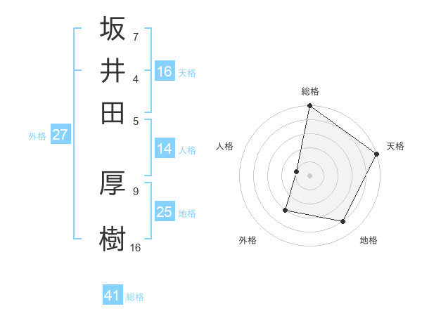 坂井田 厚樹さんを姓名の画数から五運を鑑定