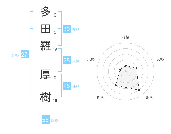 多田羅 厚樹さんの地格は25画の4点!