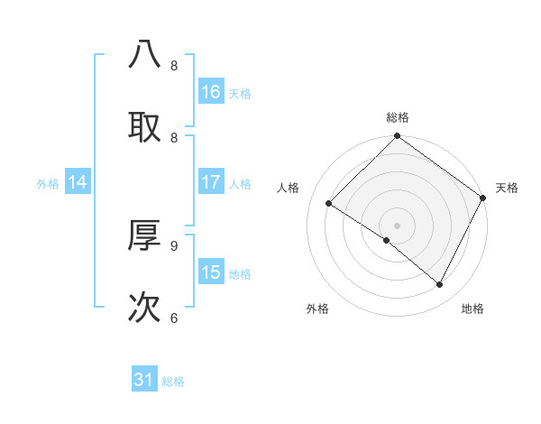 八取 厚次さんの総格は31画の5点!
