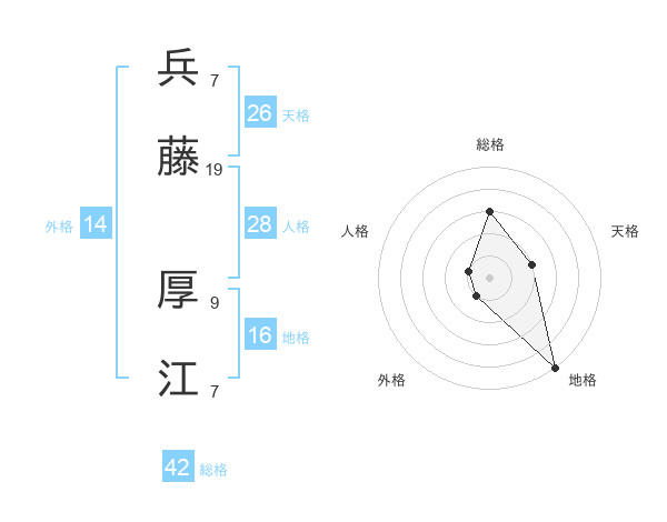 兵藤 厚江さんを姓名の画数から五運を鑑定