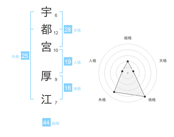 宇都宮 厚江さんの総格は44画の2点!