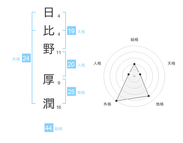 日比野 厚潤さんの総格は44画の2点!