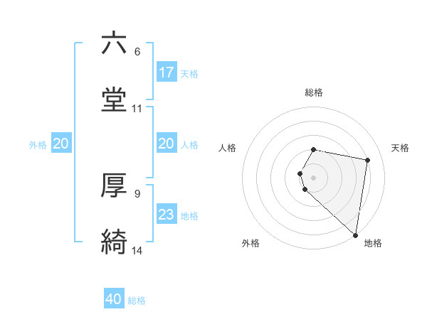 六堂 厚綺さんを姓名の画数から五運を鑑定