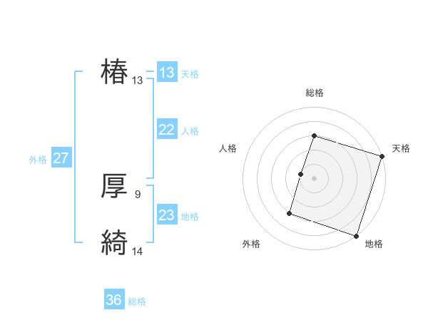 椿 厚綺さんを姓名の画数から五運を鑑定