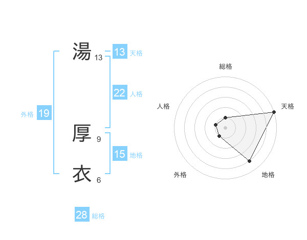 湯 厚衣さんを姓名の画数から五運を鑑定