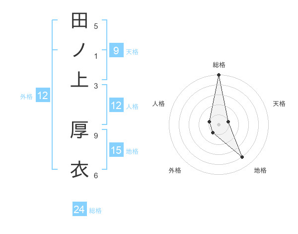 田ノ上 厚衣さんを姓名の画数から五運を鑑定